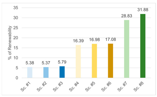 In a third analysis, the results of the emergy renewability index were verified (Figure 9).