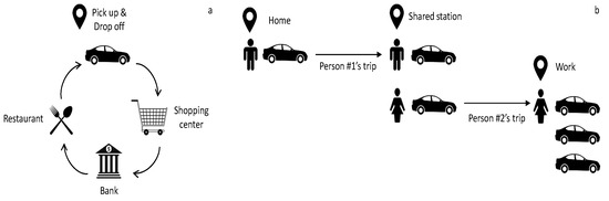 (a) Two-way carsharing vs. (b) one-way carsharing.