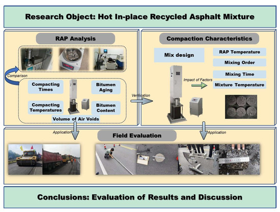 This study primarily focused on the RAP analysis, compaction characteristics, and field evaluation of HIRAM. The research objectives outlined were as follows: