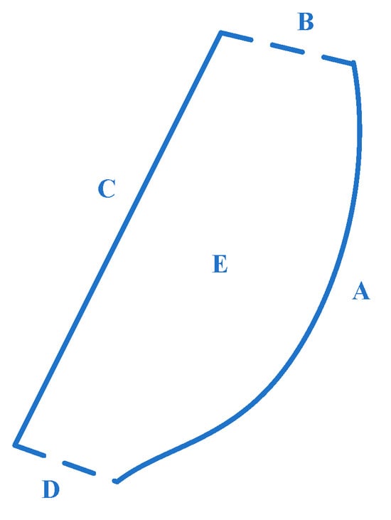 As shown in Figure 1, the scope and boundary of the port area are enclosed by port shoreline A, port extents B and D, and port land boundary C. The defined scope E represents the designated port area where port production activities take place. These five parts are spatially separate areas. Then, port routine production is carried out in this area. Based on the authors’ on-the-spot research on the wind power generation layout and management in Jiangyin Port and Tianjin Port, the alternative space of the wind farm area is proved within the scope of port extents B and D and port land boundary C, rather than scope E and shoreline A. The reason is principle 1 referred to above.