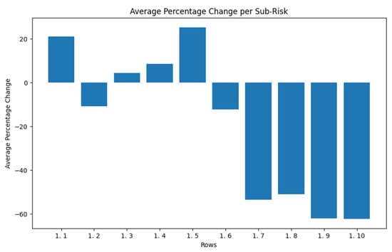 where p refers to the assessment of each of the experts. In accordance with Equation (3), this process was iterative, comparing the different types of risks and sub-risks. The next step corresponds to the summation of all the individual comparison matrices to obtain a total matrix .