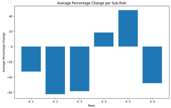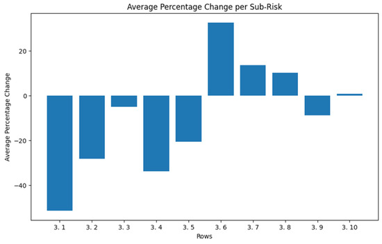 The essential steps of the AHP model according to Saaty (1980) [35] are described below, together with the key equations and formulas involved in its implementation. Taking into account the results obtained with the DEMATEL model, an AHP model was applied to prioritize the sub-risks corresponding to each risk, as defined in Table 1. To identify and prioritize the sub-risks according to their potential impact on the organization and their probability of occurrence, the AHP model was applied, taking into account Equations (13) to (16).