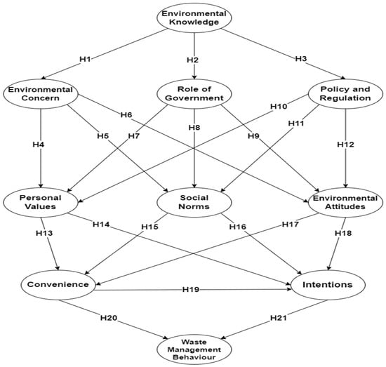 In order to implement household waste separation (HWS), people must be conscious of, confident in, and in control of their abilities and capabilities. Perceived intentions have been shown in numerous studies to considerably increase a person’s ability to control their conduct [33]. It has been asserted that a person’s belief in their capacity to exercise self-control over a specific habit encourages engagement in that action and significantly impacts intentions [35].