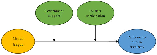 In the study on the relationship between government and enterprise performance, scholars generally believe that government policy subsidies to enterprises are important and can have a positive impact on enterprise production [41]. Chaminade investigated the Thai government’s support for businesses in innovation policies [42]. In the rural homestay industry, government policies are an important determinant of increased rural homestays. Policies provide a good institutional environment for the homestay industry and practical insights into the sustainable development of homestays [43]. Governments also play an important role in the recovery of these sectors. Fiscal policy stimuli can be used to mitigate the adverse impact of a pandemic [44]. Dvorak analyzed the economic support measures taken by local governments in Lithuania to help residents and businesses amid COVID-19 [45]; Brzyska and Szamrej-Baran have studied the impact of COVID-19 on the European Union’s Sustainable Development Goals [46]. The above analysis indicates that government support can provide corresponding policy, financial, and environmental resources for homestays. This can help mobilize business owners, customers, and employees to participate in the value creation system, thus moderating the impact of mental fatigue on the performance of rural homestays.