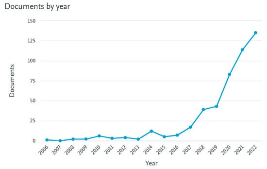 In terms of scholarly discourse, there is a substantial body of research exploring the nexus of highway traffic and sustainability in the UAE. This is illustrated in Figure 1 through an analysis of Scopus research, which is considered one of the premium databases of peer-reviewed journals. It can be seen from Figure 1 that the increase in publications on the topic over the years is very high. In 2021, 111 research papers were published on the topic in the UAE, which clearly highlights the importance of the topic and supports the purpose of this research in the UAE [].