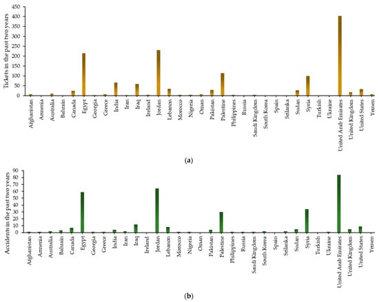 Therefore, it is crucial to investigate the influence of nationality on driving behavior and safety attitudes, particularly in a diverse driving population such as that of the UAE. Although Timmermans et al. [] examined the effect of nationality on risky driving behavior in Qatar, the impact of nationality on risky driving behavior in the UAE has not been thoroughly studied, making this research a valuable addition to the existing literature. In recent years, there has been growing awareness of the significant problem of traffic accidents in the UAE, especially among policy makers and public health professionals. However, the responses to mitigate the risk have been limited, and controlling the epidemic remains a challenging task.