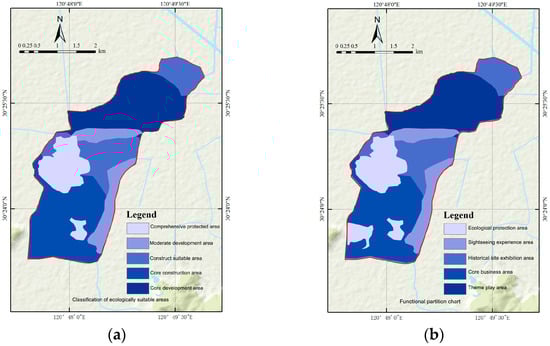 In the research on the ecological sensitivity assessment system for abandoned mining land, this paper, based on previous studies [], improved the evaluation factors for ecological sensitivity and established a systematic ecological sensitivity assessment system for abandoned mining land. The study focused on abandoned mining land with a small footprint, enhanced the accuracy of data sources, refined the classification, and implemented ecological sensitivity assessment in small-scale planning. In the combined study of ecological sensitivity and landscape pattern, building upon previous research [], this paper integrated the comprehensive analysis results of ecological sensitivity with landscape pattern indices. The incorporation of landscape pattern analysis into ecological sensitivity assessment results not only supplements explanations for ecological sensitivity but also contributes to the ecological tourism functional zoning of abandoned mining land.