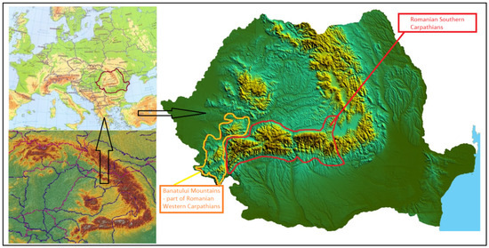 The Romanian Carpathians span approximately 67,800 km2 and are divided into three main groups: the Eastern Carpathians, the Southern Carpathians, and the Apuseni Mountains or the Western Carpathians [13].