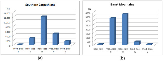 Production classes of uneven-aged forest stands located in the (a) Southern Carpathians and (b) Banat Mountains.