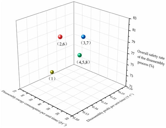 The disassembly profit per unit time, the disassembly energy consumption per unit time and the overall safety rate of the disassembly process are selected as the optimization objectives. The objective function (f(x)) is constructed as follows: