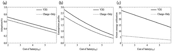 Therefore, as the battery cost decreases, the rate of increase in green energy utilization for V2G electric vehicles is higher compared to BEVs when . □