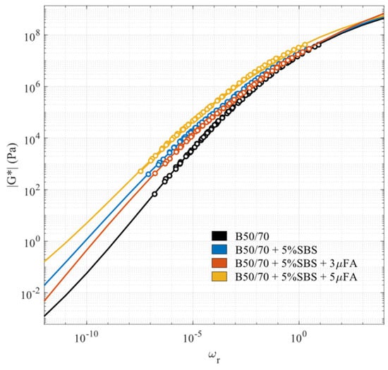 | B50/70 5% SBS 3% mFA | |G*| (kPa) | 12,990.70 | 2784.68 | 574.81 | 141.96 | 41.10 | 12.62 | 4.37 |