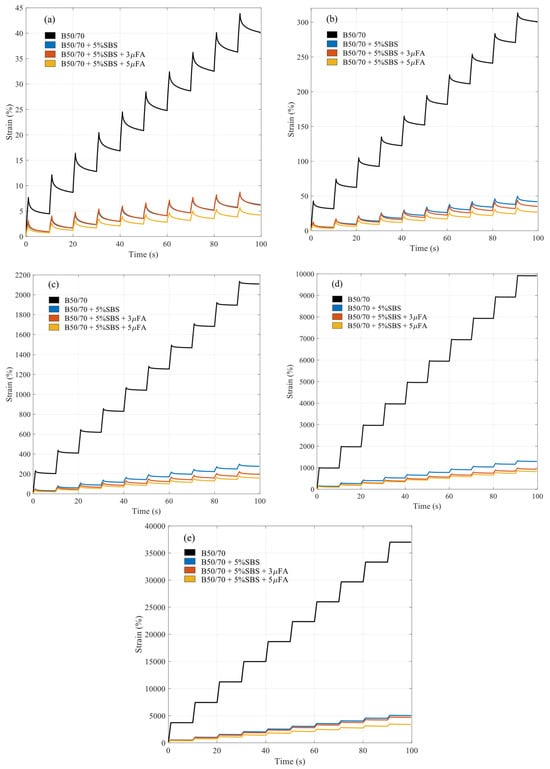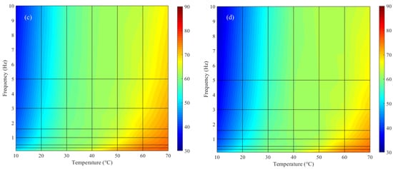 | 70 °C | Strain (%) | 37,004.30 | 5036.79 | 4711.44 | 3386.70 |