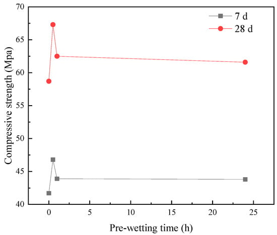 Relationship between pre-wetting time and compressive strength of SY5 specimen.