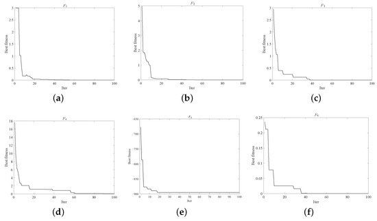 The iterative processes of IQGA corresponding to functions to are illustrated in Figure 1a–f. These figures illustrate the fast convergence speed of IQGA.