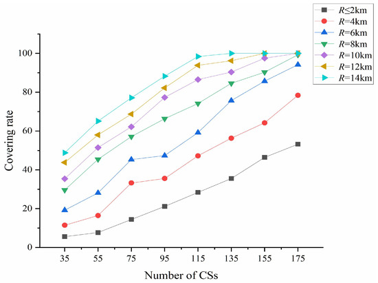 Covering rate with different number of CSs and covering radius.