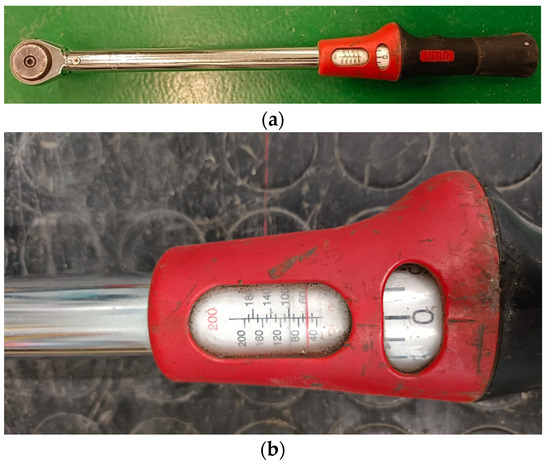 (a) Complete view and (b) the set parameter of the adjustable torque-wrench.
