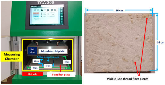 The TC values of the jute fiber (12.5% of fiber, with respect to the dry mortar mass) composite mortar samples were evaluated. The samples were prepared based on the authors previous experience, which can be found in [20,75].