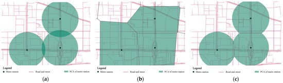 There are some limitations to this study. First, this study uses the average station distance between metro stations to determine the radius of potential PCAs and does not correct the reasonableness of the candidate radius based on actual Origin–Destination (OD) data. At the same time, the optimal PCA combination can be found by using the actual road network distance. Finally, our study did not utilize any land use data, which may have slightly impacted the model results.