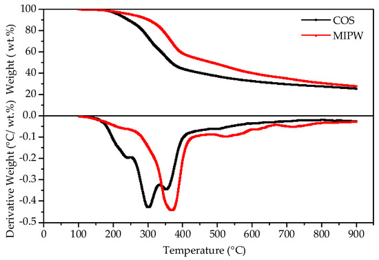 Thermogravimetric curves of COS and MIPW raw materials.