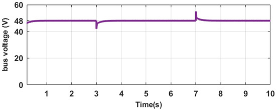 As depicted in Figure 4, the primary control mainly consists of two PI-type controllers—one for voltage control, another for current control—and a P-type controller for droop control. For regulating the DC voltage output, the voltage controller generates a reference signal employed by the current control. Subsequently, the current control generates the duty cycle as a reference for the converter’s PWM to manage the current output. The current control is configured to have a quicker response time compared to the voltage control to prevent instability.