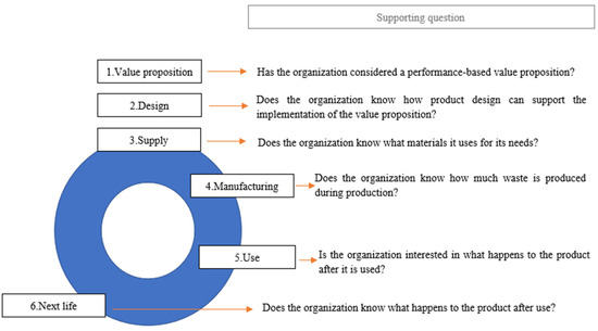 In fact, different companies have different levels of knowledge about CE. Therefore, it is important to propose a CE building framework in which it is possible to determine at what stage of CE implementation a given company is and then select an appropriate CBM. In 2017, the British Standard Institution presented “BS 8001:2017—Framework for implementing the principles of the circular economy in organizations—Guide” as the first official practical framework to implement CE in business operations, based on defined criteria and elements. It is dedicated to any organization, regardless of its size, location, sector or type. It provides a set of recommendations, definitions and clarifications to voluntarily implement CE in enterprises, based on six CE principles—system thinking, innovation, stewardship, collaboration, value optimization and transparency [71]. The company has to identify the level of circularity:
