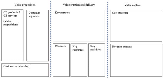 In the process of CBM creation, based on BMC, it is important to include these nine blocks [67] in correlation to the following aspects: value proposition, value creation and delivery, and value capture. Therefore, the proposed conceptualization of the CBM adapted from Osterwalder et al. includes the following elements in those areas: