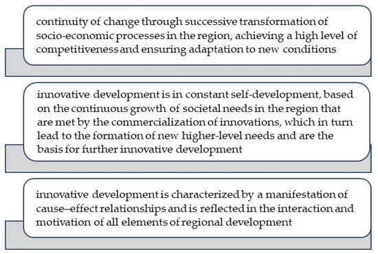 The characteristics of the region’s innovative development that distinguish it from other possible development paths include the following features (Figure 1).
