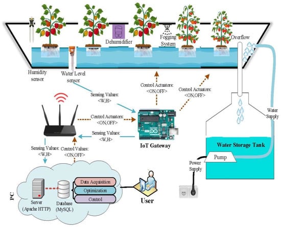 - Rohimi, R.; Woaswi, W.; Awang, R.; Rizman, Z.; Mohamed, T.D.M. Design and Prototype Development of Automated Greenhouse with Arduino and (IoT) Application. J. Adv. Sci. 2019, 28, 437–446. [Google Scholar]
