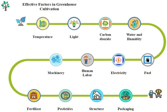 Greenhouse cultivation is a method that controls the indoor cultivation environment and optimizes it for crop growth and development [52,53]. The controlled environment of the greenhouse provides the possibility of producing crops in diverse climates and seasons [10,54] (Figure 1).
