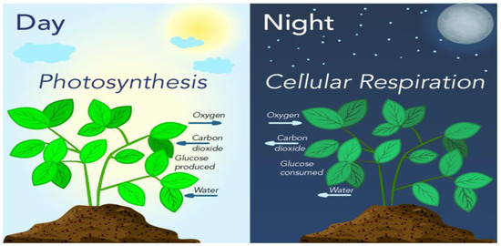 Photosynthetic cycle of plants during the day and night [143].
