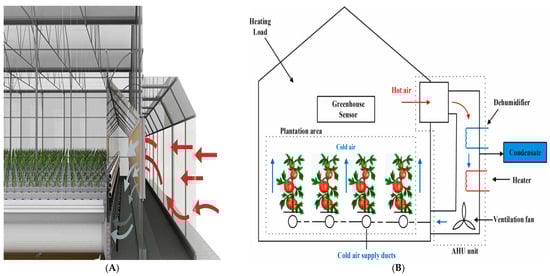 Two types of greenhouse structure: (A) closed greenhouse; (B) semi-closed greenhouse.