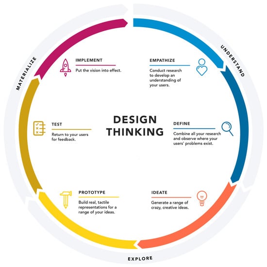 Brown [34] has the following perspective: the first step is to identify the inspiration, problem, or opportunity that motivates the search for solutions; the second step is ideation, which is the process of generating, developing, and testing ideas; and the third step is implementation, which is the path from the design studio to the market. His contemporary, Martin [46], has the following quote to explain the method: “The design thinking process is not a linear sequence of steps. Instead, it is a cyclical, iterative process in which the different phases overlap and feed into each other”.