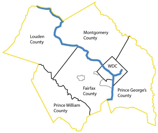 WMATA operates Metrobus, the largest bus system in the District of Columbia [76]. As a result, decisions to research, design, and implement the open stroller pilot on Metrobuses occurred within WMATA and its affiliated unions (Amalgamated Transit Union Local 689 and International Brotherhood of Teamsters Local 922) [77], which WMATA has not published. The WMATA website provides general, non-sensitive organizational information and documents related to financial audits, budgets, tariffs, contracts, labor relations, performance, and governance (e.g., by-laws). Through web searches, researchers found bus operator training documents, employee handbooks, and an internal pre-decisional policy report. WMATA receives a mix of funding from the US government, each of the Transit Zone jurisdictions (Figure 4), and the farebox. For example, WMATA’s proposed budget for fiscal year 2024 included USD 2.4 B for operations and USD 2.4 B for capital improvements [78]. State and local funding accounted for USD 2.3 B across the two categories: USD 334.2 M from DC, USD 316 M from Maryland, and USD 292.4 from Virginia. In FY24, WMATA programmed USD 67.7 M for Metrobus operations.