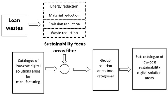 The process of deriving the sub-catalogue of low-cost digital solution areas for sustainability.