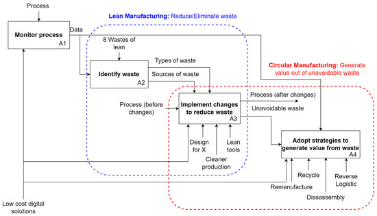 IDEF0 diagram showing how this study’s existing approach to sustainability could be expanded to include circular manufacturing.