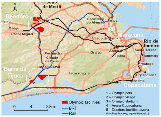 - Yamawaki, Y.; Castro Filho, F.; Costa, G. Mega-event transport legacy in a developing country: The case of Rio 2016 Olympic Games and its Transolímpica BRT corridor. J. Transp. Geogr. 2020, 88, 102858. [Google Scholar] [CrossRef]