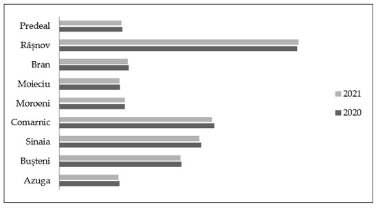 Also, comparing the two years, decreases were recorded for the year 2021 in all the administrative-territorial units, with the exception of the town of Râșnov.