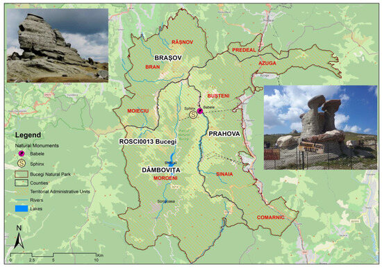 In 2000, the title of the protected area was changed to natural park through the adoption of law 5/2000, falling into category V of the international classification: protected terrestrial or marine landscape, which aims to preserve cultural landscapes created through the sustainable interaction between man and nature [92]. Geotourism, which has not yet been introduced in the Bucegi Mountains area, is supported as an educational tool for geo-landscape management [93].