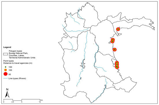 According to Popescu et al. (2023) [24], tourist attractions are elements of “non-domestic” places that attract thousands of tourists away from their home residence to capitalize on the park’s tourism resources [24]. The geotourist attractions within the study area, due to the attractiveness of the destinations [25], represent the most valuable components with a significant impact on the territory’s development. At the same time, they play a crucial role in the emergence and development of new geotourism activities [26].