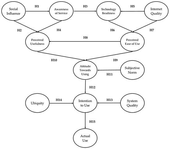 Social influence refers to the impact of others’ opinions, behaviors, and attitudes on an individual’s decision to adopt a new technology. It plays a massive role in how online transaction decisions are made following peers who use the same course of action, thus reducing the perception of risk seen in other people using a particular subject, which supports this effect [16]. In addition, through the dissemination of information via social influence, more individuals could be made aware of a particular subject or technology. Moreover, awareness of service refers to the knowledge of an individual about a particular technology or service. With observed practices, people gain awareness about the new systems and technology development and increase the perceived usefulness. Hence, the researchers constructed the following hypotheses: