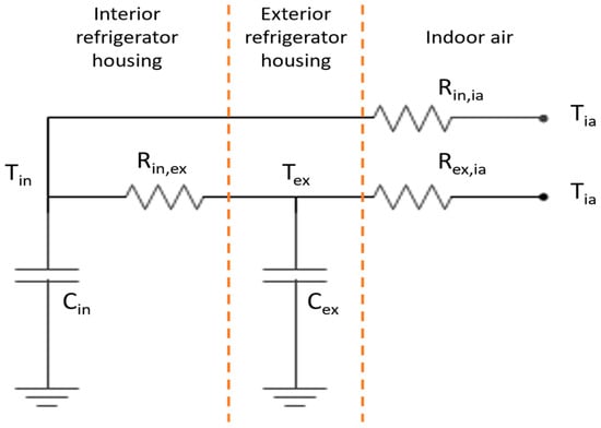 The RC model for the refrigerator is shown in Figure 2. It helps to visually understand the placement and relationship between the variables present in Equations (7)–(10).