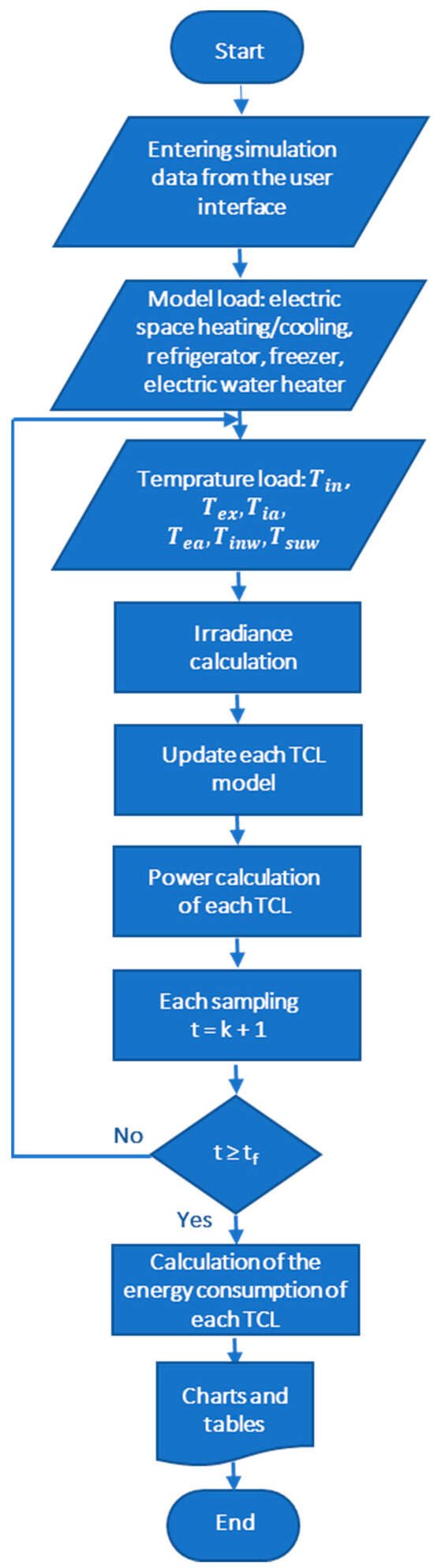 This paper presents an SBET-TCLs that allows for the in-depth study of the dynamic behavior, energy consumption, and best management of TCLs in building (in the following and throughout the paper, building, house or dwelling may be used interchangeably) applications: electric space heating/cooling, refrigerators, freezers, and electric water heaters. Due to the experience in previous developments, the simulation tool was implemented using Easy Java/JavaScript Simulations (EJS) [], an open source tool written in Java, mainly dedicated to teaching and learning.