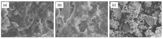 SEM images of OWs: (a) OWB; (b) OWS; (c) OWA.