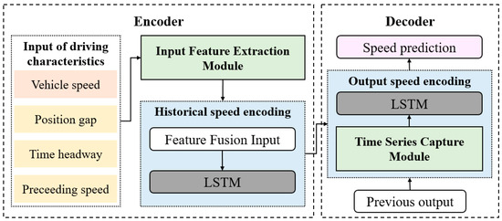 - In order to accurately predict the speed of heterogeneous drivers, this paper constructs a speed prediction model with an encoder–decoder framework and two attention mechanisms named DEAD. The results show that the prediction effects of different types of drivers under the same prediction conditions will be different, and the timid type has the highest prediction accuracy, followed by the aggressive type and neutral type. The prediction model proposed in this paper has better prediction performance than other baseline models, and the parameter sensitivity analysis and robustness analysis also verify that the model has better prediction ability;
