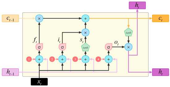 where is a cascade of the last hidden state and the current input . and are parameters to be learned. and are logic functions and element-wise multiplication, respectively. The LSTM cell structure is shown in Figure 3.
