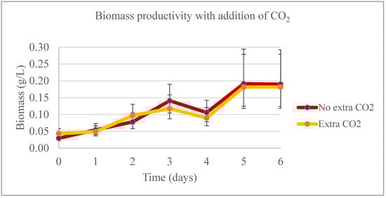 Biomass productivity for the pilot-scale experiment when adding additional CO2.