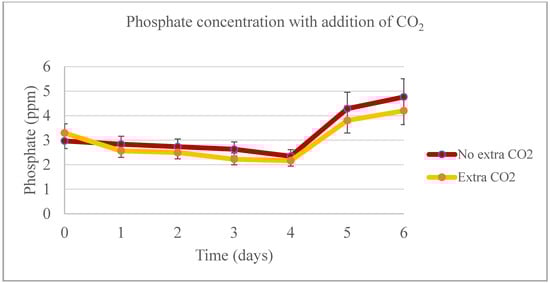 Phosphate productivity for the pilot-scale experiment when adding additional CO2.