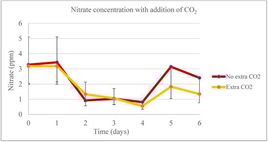 Nitrate productivity for the pilot-scale experiment when adding additional CO2.