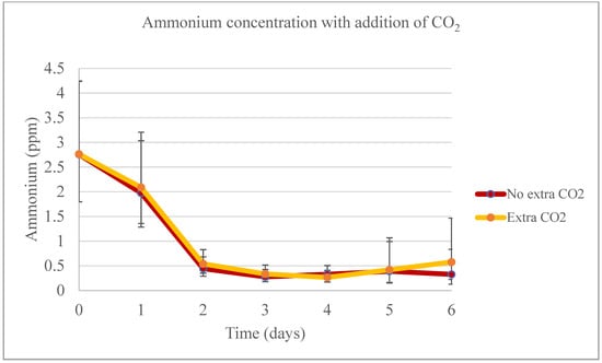 Ammonium productivity for the pilot-scale experiment when adding additional CO2.